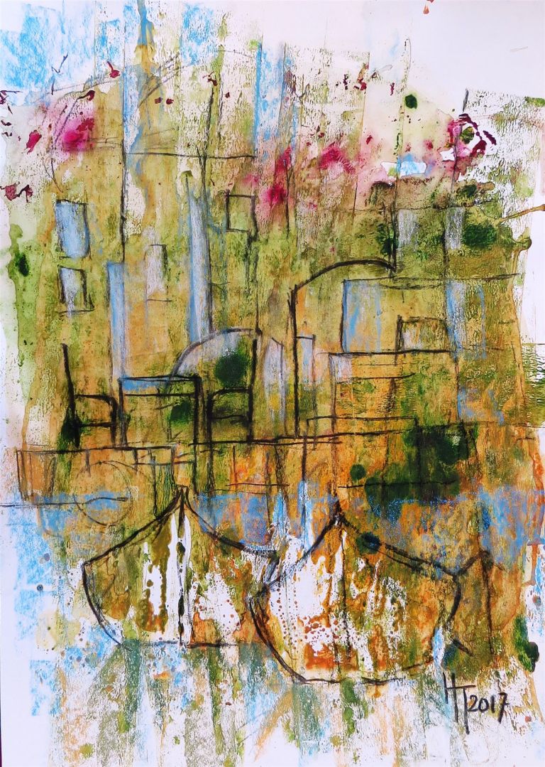 Zypriotische Impressionen | Malen und Gestalten mit Turkish Coffee | "7 Stück Kunst in sieben Tagen" statt Selfies zu zeigen. Zu solch' einer Aktion hatte unlängst Nilgun Güney auch Heidi Trautmann auf Facebook eingeladen. Sechs Beispiele daraus: