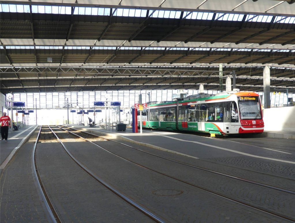 In einer Industriestadt wie Chemnitz ist es nicht überraschend, wenn der Besucher auf technisch clevere und innovative Lösungen stößt, z.B. an dem 1873 errichteten Hauptgebäude des Bahnhofs der Stadt. Der Beobachter stellt erstaunt fest, dass auch die Straßenbahnen in die Bahnsteighalle des Bahnhofs einfahren. Da das Chemnitzer Straßenbahnnetz die gleiche Spurweite wie die Deutsche Bahn hat, können die Gelenkzüge bis nach Stollberg, Mittweida und insgesamt 20 andere Orte des weiteren Umlandes fahren. Weitere Linien und Linienverlängerungen sind geplant.