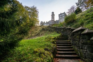 Zum Park im Kasseler Stadtteil Bad Wilhelmshöhe - angelegt ab 1696 von den Landgrafen und Kurfürsten von Hessen-Kassel und durch Erben noch 150 Jahre lang erweitert - zählen neben dem Herkules und den Wasserspielen auch die künstliche Ruine Löwenburg sowie das Schloss Wilhelmhöhe mit angrenzendem Ballhaus und Gewächshaus.