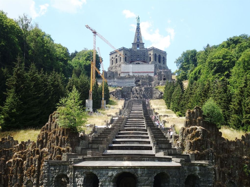 Es würde den Rahmen dieser Seite sprengen, würde ich all meine Eindrücke vom ersten Besuch des Bergparks Wilhelmshöhe vollends ausbreiten. Vielmehr darf ich neugierig machen und empfehlen, sich baldigst selbst auf den Weg zu machen: hin nach Kassel zu den Wasserkünsten inmitten monumentaler Wasserbaukunst und dabei rauf zur technisch und künstlerisch anspruchsvollen Herkules-Großskulptur. Denn an keinem anderen Ort der Welt ist eine am Hang gelegene Parkarchitektur mit vergleichbaren Ausmaßen und einer technisch so vollkommenen Wasserarchitektur ausgestattet worden, wie in Kassel seit 1691 unter Landgraf Karl. Folgend eine geteilte Zusammenfassung über die 38. Welterbestätte in Deutschland: