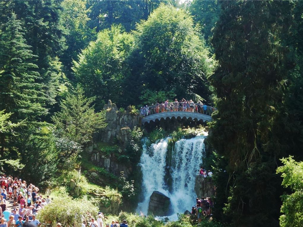 Bereits seit 300 Jahren gibt es im Nordhessischen eine bis heute bewundernswerte Attraktion, die vom Mai an bis in den Herbst hinein zu OpenAir-Festivals der etwas anderen Art einlädt. Gemeint ist ein faszinierendes Theater inmitten von Natur, bei dem das Publikum mit geradezu kindlicher Freude ständig wechselnden "Wasserbühnen" fußläufig zu folgen scheint. Dann, wenn Wasser über Kaskaden, "Bergstufen", unter einer fast märchenhaft anmutenden kleinen Brücke hindurch sprudelt und über ein Aquädukt sowie weitere Kaskaden hin zu einem Schlossteich fällt, wo natürlicher Wasserdruck das kühle Nass über 50 Meter in die Höhe schießen lässt.