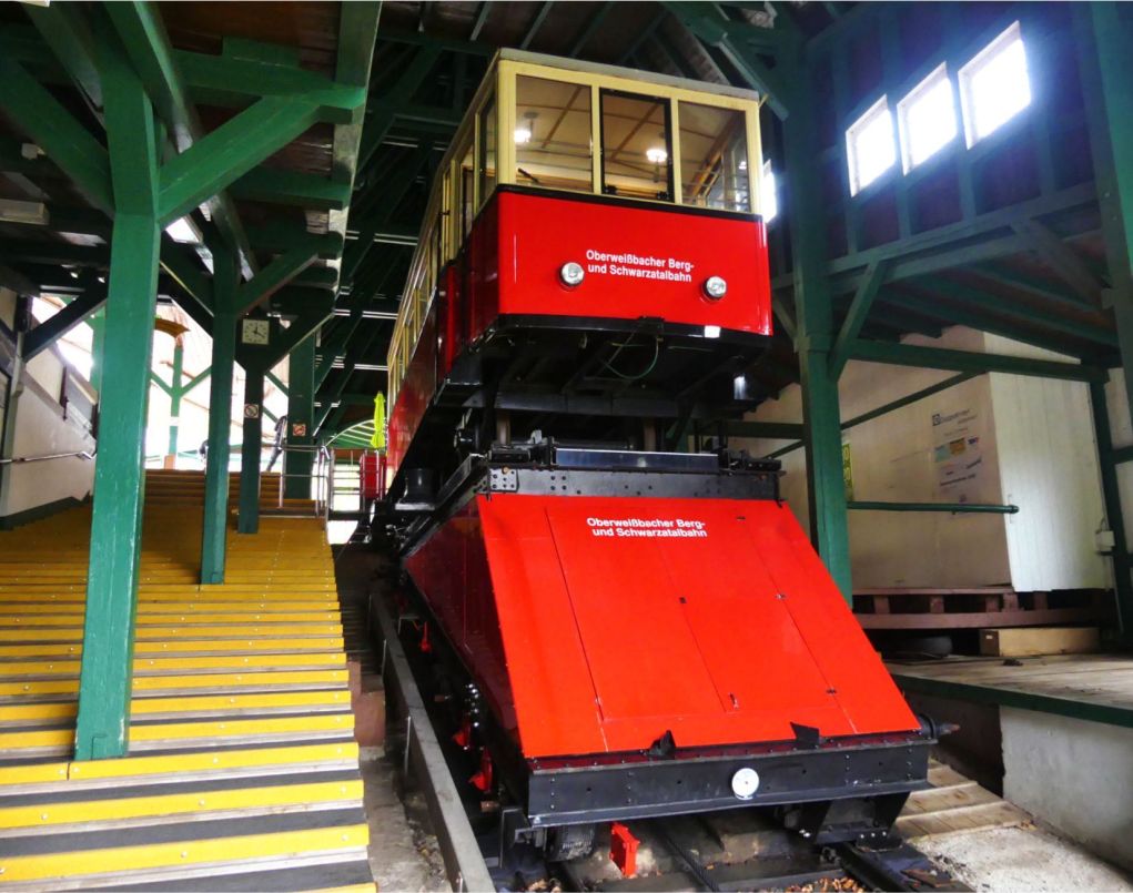 Für den standesgemäßen Besuch im Schwarzatal ist die Fahrt auf zwei Schienen mit der Berglandbahn eine angenehme Pflicht. Mit dieser Oberweißbacher Bergbahn werden wie zur Eröffnung der Standseilbahn vor einhundert Jahren die 323 Höhenmeter auf einer Gesamtstrecke von 1400 Meter Länge überwunden.