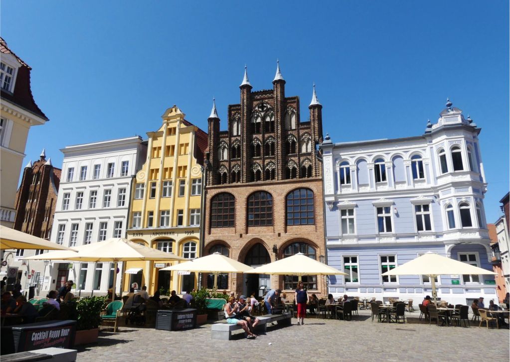 Die Straßen der Stralsunder Innenstadt sowie auch der Zuschnitt solcher Plätze wie des Alten Marktes haben sich seit dem Mittelalter nicht verändert. Jede Straße war damals genau so breit, allerdings ohne Gehwege und auch die Häuser standen auf dem gleichen Fleck. Architektur und Bebauung sind typisch für hanseatische Siedlungen, die es in ganz ähnlicher Form in Skandinavien bis hin zu Tallinn/ Reval im Baltikum gibt.