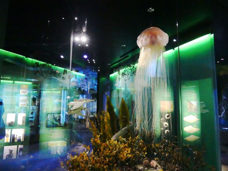 Im Ozeaneum wird anschaulich auch über die Umweltbelastung der Meere informiert sowie ihrer Tier- und Pflanzenwelt. Mit dem Bau und dem Betreiben von Bohrinseln, Windkraftanlagen und der Schifffahrt verändert der Mensch die akustischen Landschaften im Meer und den Tieren wird es zu laut. Schutz der Tiere und Menschen an den Küsten ist auch ein Thema. Manche Besucher hätten sicherlich in solch einer Einrichtung auch gerne etwas über das Schicksal der deutschen Ostseefischer erfahren. Man liest zwar einiges von weltweiter Überfischung auf Informationstafeln: „52 Prozent der marinen Fischbestände werden voll ausgebeutet, 28 Prozent sind überfischt“, heißt es da und „Pro Sekunde werden weltweit 2,5 Tonnen Meeresfisch gefangen“. Bekanntlich wurde für die paar Dutzend Ostseefischer mit ihren kleinen Fischkuttern von der EU eine Fangquote festgelegt. Seit Beginn dieses Jahres beträgt die Quote 0,7 Tonnen für Heringe und Dorsch, nicht im Monat, sondern im Jahr. Der Touristik-Chef Kretzschmar antwortet auf die Frage nach Fangquoten recht pragmatisch. Wie groß müsste die Ostsee sein, um mit den Heringen und Dorschen die Gäste an der Küste zu bewirten? Sicher gebe es ein paar Restaurants, die von Fischern direkt beliefert werden. Viel spannender ist für Kretzschmar, wenn der Ostseefisch nicht auf den Teller gelegt wird, sondern auf Touren mit einem Angelguide (Ticket zwischen 150 bis 200 Euro) von Touristen gefangen wird. Da gibt es eine Wertschöpfung von ein paar hundert Euro auf das Kilo Fisch. Zu den Problemen gehört auch, dass manche Fischer über keine Absatzketten verfügen, und somit der von ihnen gefangene Fisch überhaupt nicht ins Restaurant kommt. Dann landet ein Teil des Fanges im Fischmehl. Allerdings sollten die Küstenregionen zumindest auch im Interesse des Tourismus, so die Meinung des Autors, mit der intensiven Diskussion über Fangquoten nicht so lange warten, bis der letzte Ostseefischer aufgegeben hat. Nur für Folklore im Hafen werden die Fischer nicht zur Verfügung stehen.