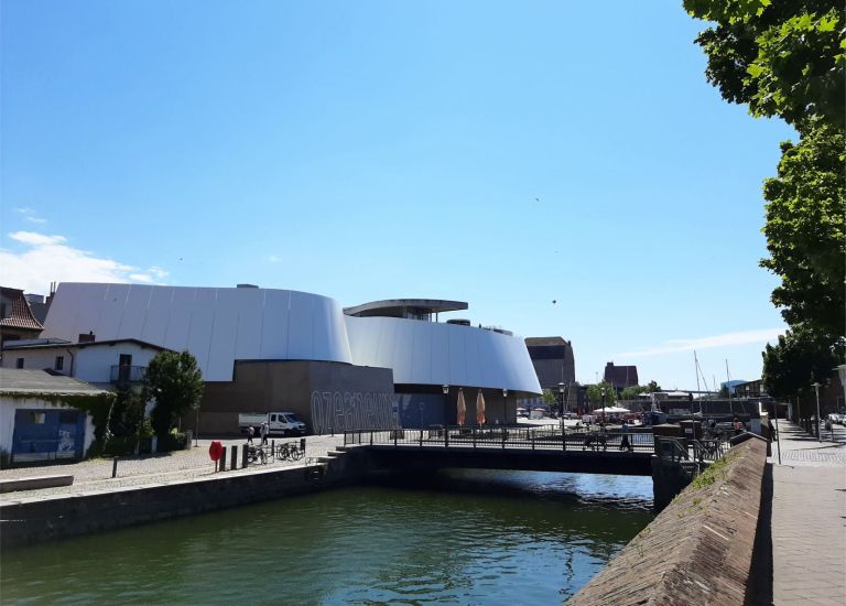 Ein einzigartiges Erlebnis an Land steht unübersehbar nur ein paar hundert Meter vom Stralsunder Hafen entfernt - das Ozeaneum. Die moderne Architektur ist zum Bestandteil des Stadtbildes geworden.