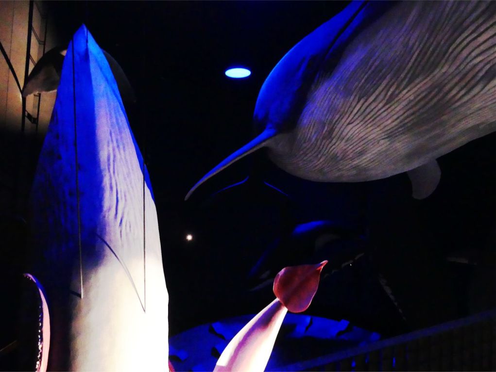 Auch beim Ozeaneum lassen sich die Touristen nicht durch das verordnete Corona-Regime des Tragens eines Mund-Nasen-Schutzes vom Besuch des Museums abhalten. Corona schafft einige Einschränkungen. Während früher in der Saison bis zu 10.000 Besucher täglich empfangen wurden, können derzeit nur maximal 2000 Besucher pro Tag in die Ausstellung gehen. Doch die Geduld der Wartenden am Einlass lohnt sich. Das im Jahr 2009 eröffnete Ozeaneum zeigt die größte Ostseeausstellung in ganz Europa und zeigt auch Ausstellungen über die Weltmeere und die darin vorhandene Vielfalt des Lebens. In dem modernen Konzept der Ausstellungen sind zahlreiche großräumige Aquarien eine lebendige Ergänzung zu einer Vielfalt an seltenen Originalen von Pflanzen und Tieren, zum Teil geliefert aus hauseigener Präparation. Die Ausstellungsmacher sind sich auch nicht zu schade, solche Fragen zu stellen wie „Müssen Fische trinken?“, um dann in verständlicher Sprache zu antworten: „Ja, sie müssen trinken und die Meeresfische geben über Poren in den Kiemen überschüssiges Salz ab.“ Zu den Höhepunkten des Ozeaneums zählen zweifellos die Pinguin-Anlage auf der Dachterrasse unter freiem Himmel sowie die mit Greenpeace im Erdgeschoss präsentierte Ausstellung „1:1 - Riesen der Meere“. Wie der Titel schon aussagt, kann man über die gesamte Raumhöhe schwebende Nachbildungen von Walen in Originalgröße in Augenschein nehmen. Die Nachbildung eines Blauwals mit 26 Meter Länge ist das größte Exponat. Rund zwei Dutzend Liegen laden den Besucher ein, in aller Ruhe die ganz großen Säugetiere der Welt intensiv zu betrachten.
