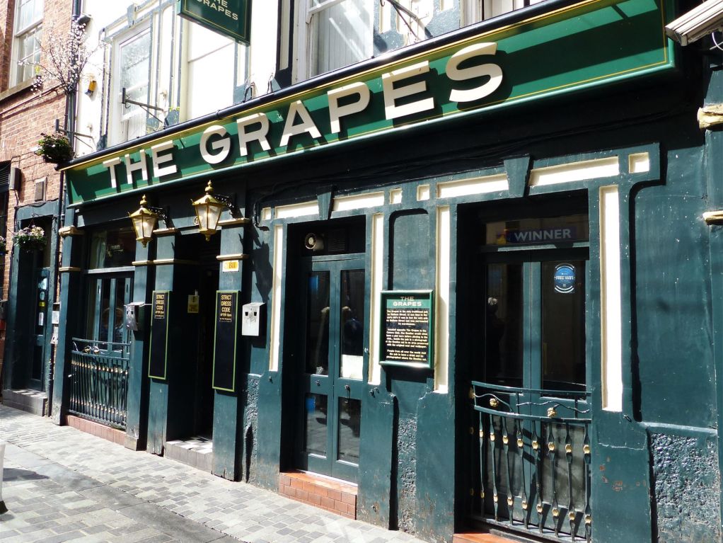 In der Mathew-Street befindet sich „The Grapes“, in den 60er Jahren das einzig existierende Pub in der Nähe vom Cavern, wo die Beatles vor ihrem Auftritt sich ein Bier genehmigten. Heute haben sich hier viele Kneipen angesiedelt wie „The Smokies“, „Remeniss“ , der irische Pub „Flanagal`s Apple“. Im Sommer stellen sie Tische und Stühle auf die Straße.
