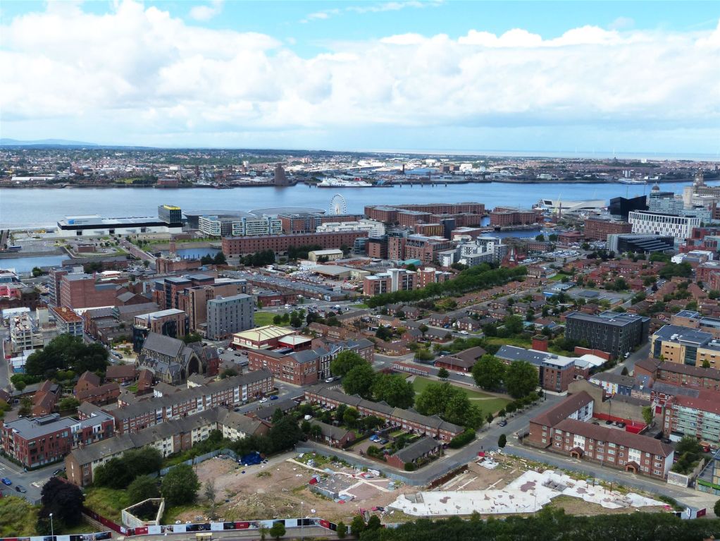 Die Kathedrale wie auch die legendären Gebäude genannt die "Drei Grazien" (das Royal Liver Gebäude, das Haus der Cunard - Reederei und das der Hafenbehörde) sind die Wahrzeichen von Liverpool. Sie werden aus der Sicht des Flusses und vom anderen Ufers durch ein modern gebautes Kongresscenter und ein Exhibition Center sowie die Echo-Arena etwas verdeckt.