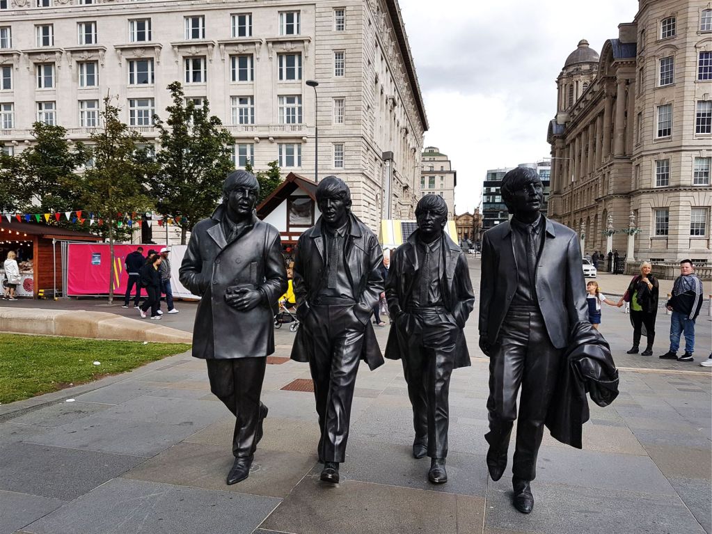 Das so irdisch gestaltete Denkmal für die Beatles hat die Stadt an diesem prominenten Platz erst im Jahr 2015 errichtet. Hier werden sie nun ohne Pause von unzähligen Touristen umringt und fotografiert.