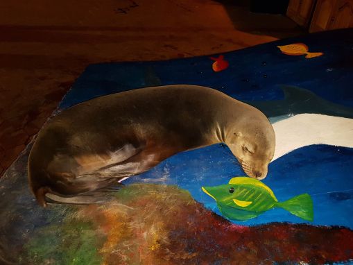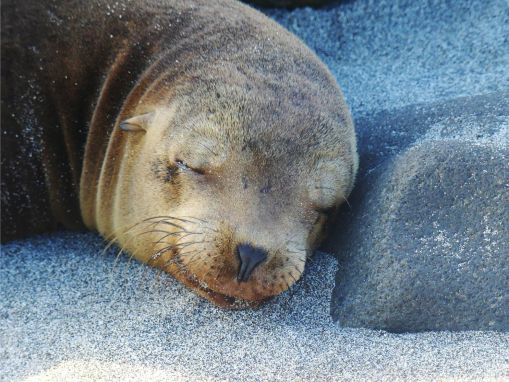 Zu den wenigen Tieren der Vulkaninseln, die sich ebenfalls fast überall zu Hause fühlen, gehört der Seelöwe, der auch zu den Big 15 gezählt wird. Dabei handelt es sich beim Galapagos-Seelöwen um eine Ohrenrobben-Art, die nur hier in der Galapagos-Welt zu finden ist. Aber dafür trifft sie der Besucher an jedem Sandstrand der Inseln und ihre Kolonien bevölkern auch die felsigen Uferabschnitte. Sie haben scheinbar die wenigste Scheu vor Menschen und sind sogar so neugierig, dass sie die von Touristen abgelegten Rucksäcke am Strand mit ihren Nasen beschnuppern und inspizieren. Gern schauen sie auch mal auf der Promenade vorbei, wie in Puerto Ayora zu erleben, und legen sich auf die aufgestellten Bänke an der Kaimauer. Diese Furchtlosigkeit ist, so die Experten, eine Verhaltensweise, die sich nur in einer Umwelt herausbilden konnte, in der die Tiere keine Feinde hatten und keine Angstreflexe entwickeln konnten.