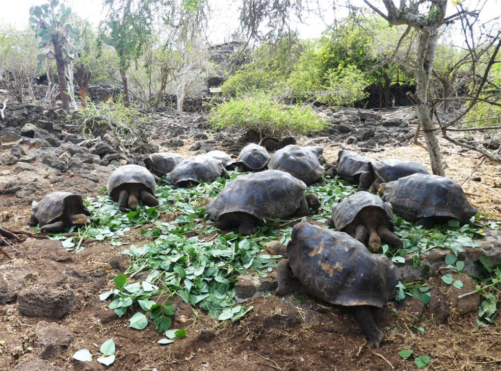 Hier befindet sich am Rande der touristischen Hafenstadt Puerto Ayora die große Charles Darwin-Forschungsstation, in der Wissenschaftler aus aller Welt die Pflanzen- und Tierwelt der Vulkaninseln erforschen. Ein Schwerpunkt der Forschung und zweifellos auch die Hauptattraktion der Insel sind die Galapagos-Riesenschildkröten. Eine weitere Schildkröteninsel, ebenfalls mit einer Farm für die Tiere, befindet sich auf der östlichsten Insel von Galapagos, der Insel San Cristobal. Der im Jahr 1965 auf Santa Cruz gegründeten Station gelang es mit umfangreichen Zuchtprogrammen, das Aussterben einiger Unterarten der Riesenschildkröten abzuwenden. Ein weitläufig angelegter Tierpark mit Gehegen und großen Freiflächen macht die Touristen mit der Aufzucht von elf Arten bekannt. Eine besondere Geschichte wird über die männliche Schildkröte Diego erzählt. Als junge Schildkröte wurde sie von US-amerikanischen Forschern in den Zoo nach San Diego in Kalifornien gebracht. Als auf Galapagos in den 70er Jahren die Unterart der Insel Espanola auszusterben drohte, da nur noch zwei zeugungsunwillige Männchen und 12 Weibchen aufzufinden waren, erinnerte man sich seiner und delegierte ihn zurück auf die Inseln. Hier legte er richtig los und hat insgesamt 1200 Nachkommen gezeugt. Angeblich ist er darauf ganz stolz, berühmt in Forscherkreisen ist er sowieso.