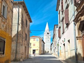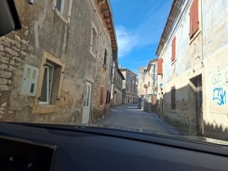 Als Basislager für die Recherchetouren in Istra wählte ich das Dorf Galižana aus. Während der Römerzeit, die vor gut 2100 Jahren diesen Landstrich eroberten, war es das Zentrum der Pula-Kolonie, in der sich die römischen Straßen „Decumanus“ und „Cardo maximus“ kreuzten. Aktuell beherbergt der Ort rund 1600 Einwohner. Und viele Straßen erinnern immer noch an jene aus römischen Zeiten. Selbst auf der asphaltierten Hauptstraße (Ulica Michele Della Vedova) durch Galižana gibt es kaum Gehwege. Busse und Lastwagen passen stellenweise gerade noch so in einer Richtung hindurch. Und auch Pkw können an vielen Passagen nicht aneinander vorbeifahren. In den zahlreichen Nebenstraßen ist es meist noch viel enger.