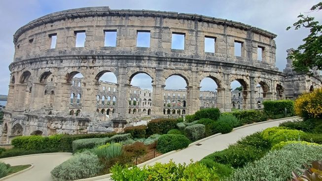 Für Busgruppen und Klassenausflüge gehört die Arena in Altstadt- und Hafennähe zu der ersten touristischen Adresse in Pula. Das ellipsenförmige Kulturdenkmal ist auch das Wahrzeichen der Inselmetropole.