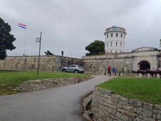 Von den Stadtstraßen aus ist es kaum zu sehen – das Kaštel. Doch von dieser Festung auf dem Stadtberg aus dem 17. Jahrhundert reicht der Blick weiter über Pula. 1630 begannen die Venezianer mit dem strategisch wichtigen Bauobjekt. Das sternförmige Gebilde war typisch für die Militärarchitektur der Renaissance. Denn die Architekten waren davon überzeugt, dass diese Form einer Bedrohung durch Kanonenfeuer entgegenwirke. In ihrer Blütezeit hatte die Anlage bis zu zehn Meter hohe Mauern und wirkte als beeindruckende Verteidigungsstruktur in der Region. Die Anlage wurde später mehrfach umgestaltet – vor allem während der österreichisch-ungarischen Monarchie. Neben dem interessanten Museum in den heutigen Räumlichkeiten, beeindrucken vor allem die offenbar uralten Bäume, die in die Festungsmauern eingewachsen zu sein scheinen.