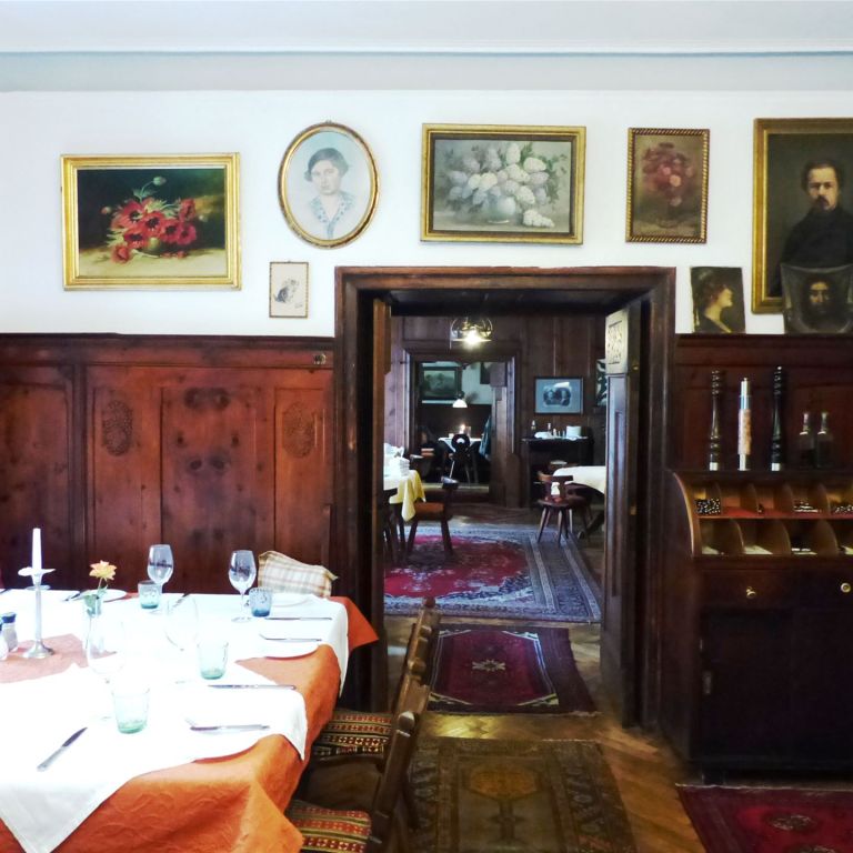 Das Haus wurde 1640 von einem Bader gebaut, im Mittelalter der Arzt der kleinen Leute und wurde später zu einem großen gut florierender Gasthof mit ein paar Fremdenzimmern umgewandelt. Erst in den 50er Jahren des vorigen Jahrhunderts begann hier das Zeitalter des Tourismus mit den ersten Urlaubern aus Frankreich und dem schrittweisen Ausbau der Zimmer. Keines der teilweise großzügig angelegten Zimmer hat den gleichen Schnitt, alle sind individuell eingerichtet. Das kann wohl kaum ein Hotelneubau schaffen.