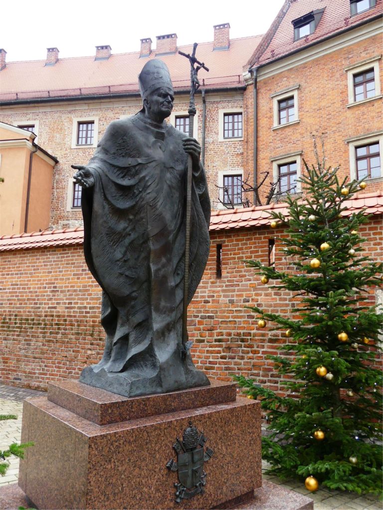Der Wawel stellt ein großen Bauensemble von tausend Jahren Kunst und Architektur dar, in dessen Mittelpunkt das Schloss steht. Schon der Eintritt in den Schlosshof mit seiner hellen Pflasterung und den umlaufenden Arkaden ist höchst eindrucksvoll. Das heutige zweigeschossige Schloss ist Stil der Renaissance und des Barocks gebaut und trägt außerdem noch Elemente des Klassizismus. Der Gang durch die repräsentativen Königsgemächer ist ein Streifzug durch Zimmer und Säle, in denen Abgesandte empfangen, Senatssitzungen gehalten und höfische Bälle und Hochzeiten gefeiert wurden. Besonders beeindruckend sind die riesigen flämischen Gobelins, die König Sigismund August im 16. Jahrhundert bestellte und von denen heute immerhin noch 136 zu bestaunen sind. Die längste Warte-Schlange der Besucher ist vor der aus Backstein und weißem Kalkstein gebauten Wawel-Kathedrale, die auf eine tausendjährige Geschichte zurückblickt. „Derjenige, der die Wawel-Kathedrale besucht, muss der Geschichte der Nation ins Gesicht blicken“. So die Worte von Papst Johannes Paul II. Das Denkmal von Karol Jozef Wojtyla steht gleich neben der Eingangspforte.